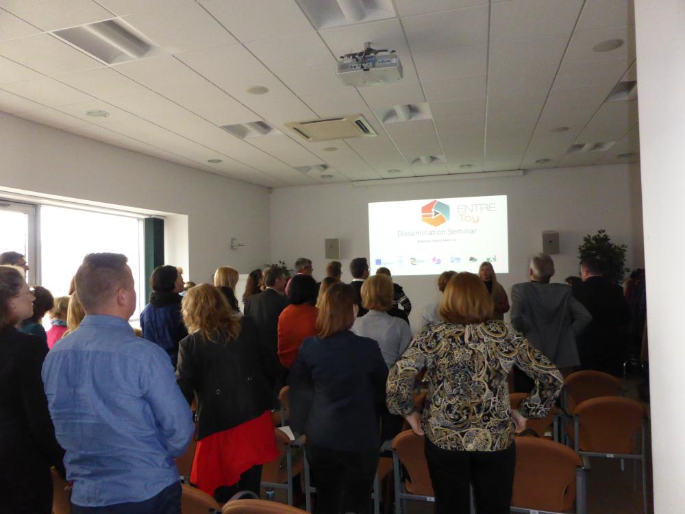 W trakcie seminarium zaprezentowano metody nauczania przedsiębiorczości rozwijane i udoskonalane w ramach projektu. Przedstawicielki konsorcjum szkół SASKY omówiły założenia metody TOY-model, zaś przedstwiciele koordynatora projektu przedstawili kwestionariusz "Entrepreneurial school" - narzędie do samobadania przez szkoły i instytucje poziomu przedsiębiorczości. Ponadto wśród prelegentów pojawili się uczestnicy warsztatów „Coaching przedsiębiorczości drogą do sukcesu…", którzy opowiedzieli o swoich wrażeniach z udziału w tych warsztatach oraz jak to wpłynęło na ich obecną sytuację zawodową. Wśród uczestników seminarium byli przedstawiciele m. in. Powiatowych Urzędów Pracy województwa podlaskiego, szkół średnich z terenu Białegostoku, Centrum Kształcenia Ustawicznego i Lokalnego Centrum Doradztwa Zawodowego, Kuratorium Oświaty w Białymstoku, Białostockiego Parku Naukowo-Technologicznego oraz Litewskich Publicznych Służb Zatrudnienia (z Wilna i Alytusa) .